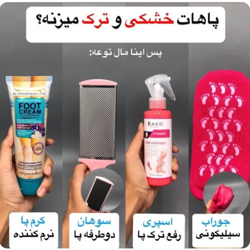 پک بهداشت و مراقبت پا شامل رنده پا، اسپری و کرم ترک پا